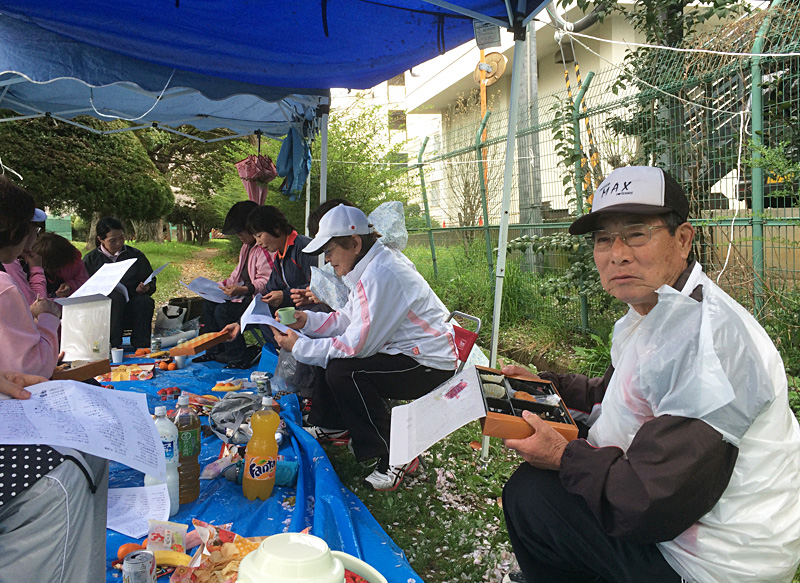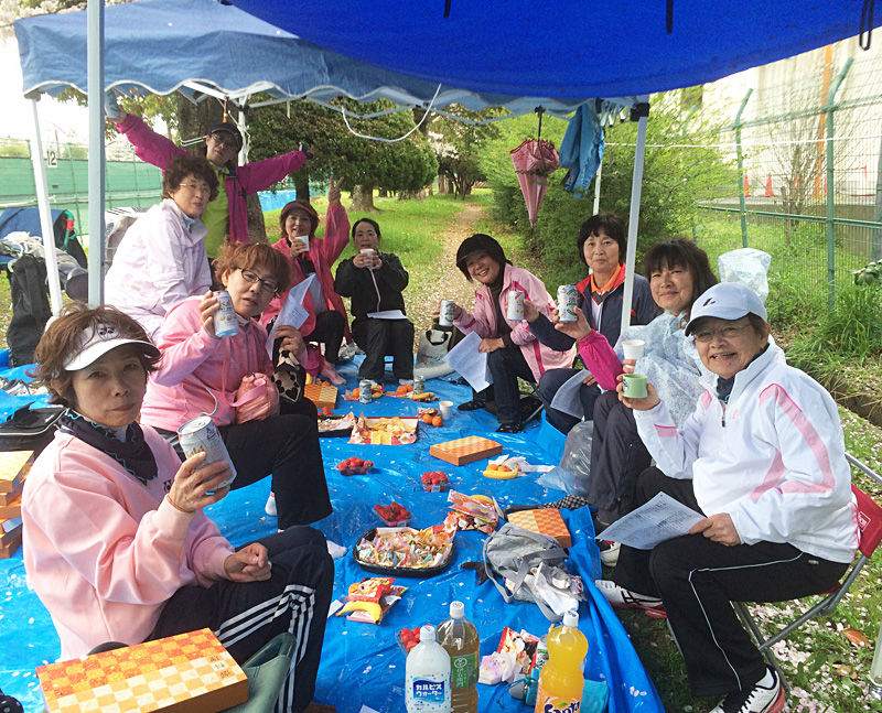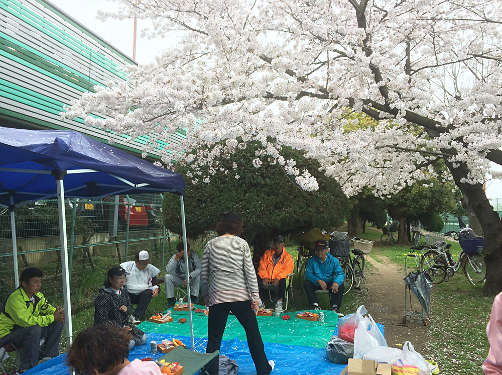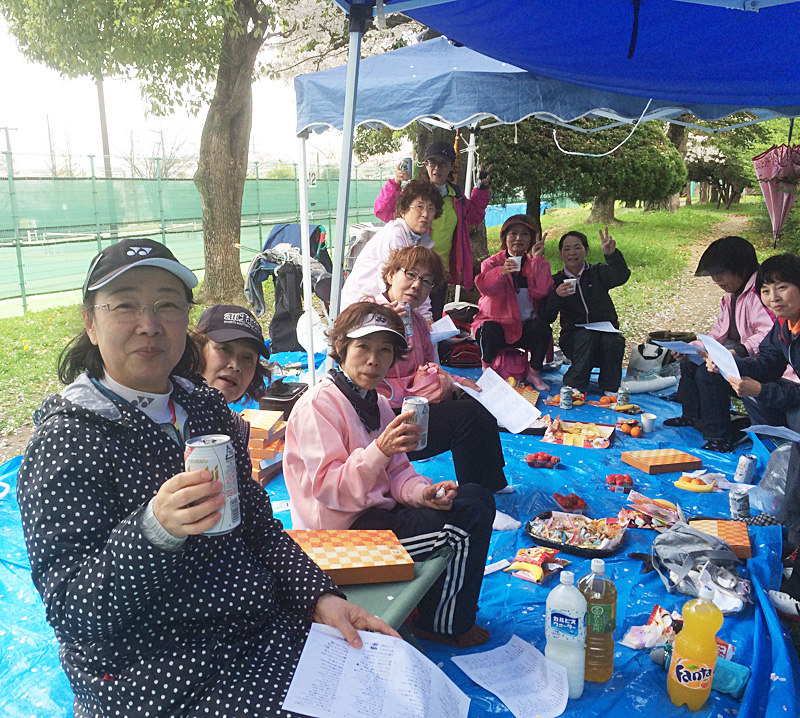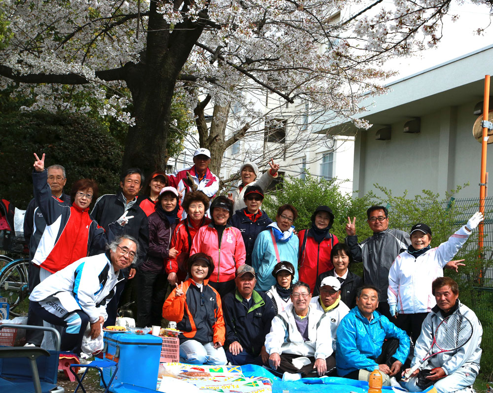 4月4日(金)金岡教室恒例のお花見を金岡公園テニスーコート11番コート裏で飲みや歌えやと楽しく過ごしました。